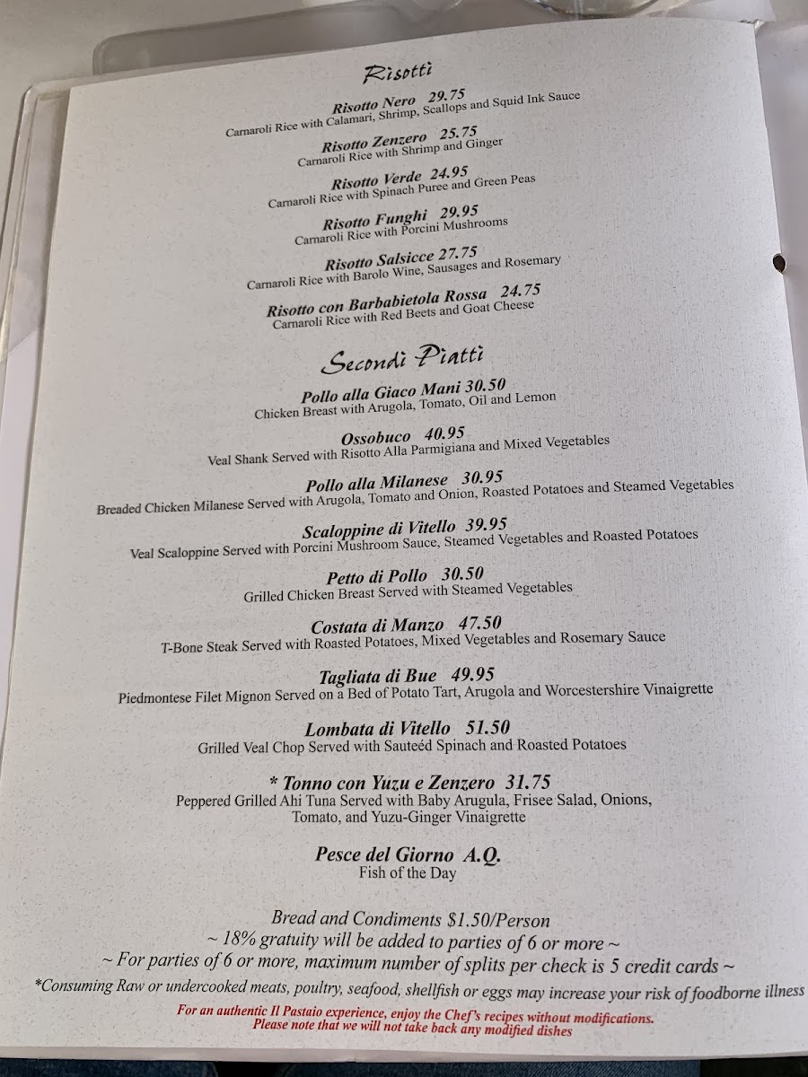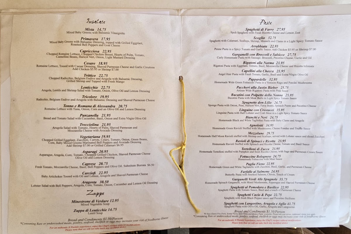 Start with a refreshing Insalata, featuring the vibrant Trittico Chopped Radicchio topped with succulent grilled shrimp and fresh mango, or indulge in the rich, heartwarming Minestrone Di Verdure. The Antipasti selections, such as the Antipasto Casereccio, are perfect for sharing, inviting guests to savor an impressive array of cold cuts and cheeses.